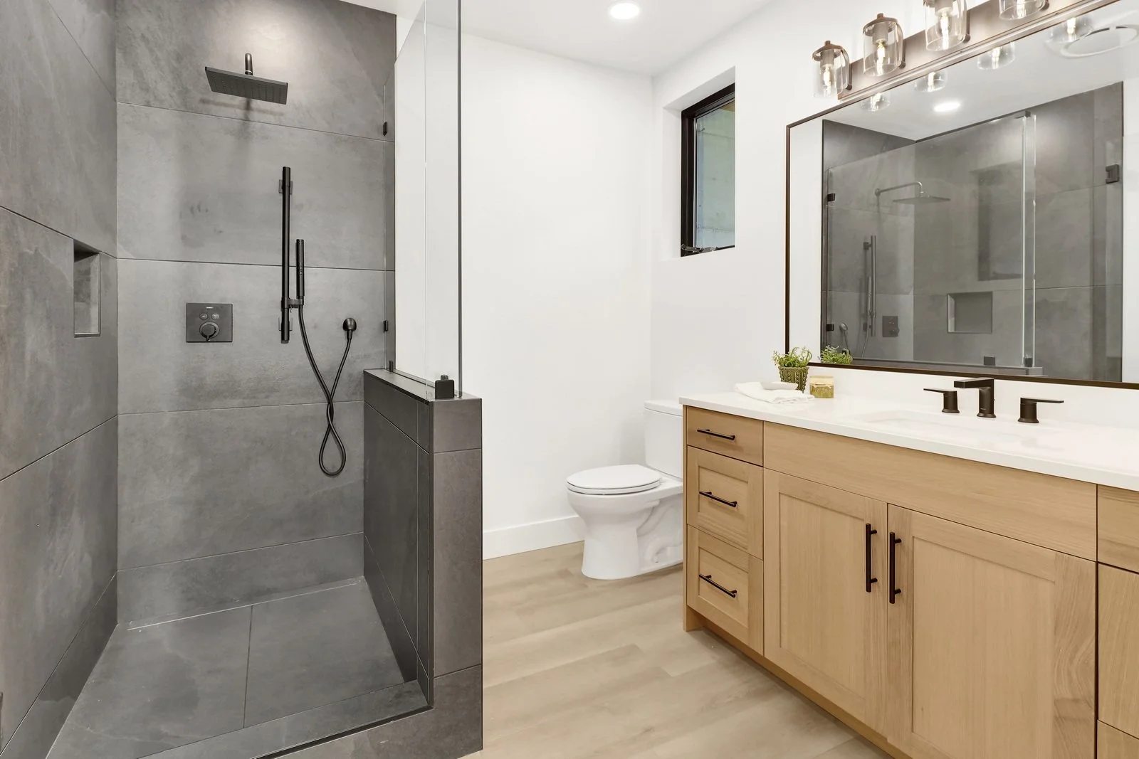 Custom bathroom remodel. Create your own oasis. Make it stand out. Custom Finishes Custom Tile Work Contact Us Before & After Before After Before After